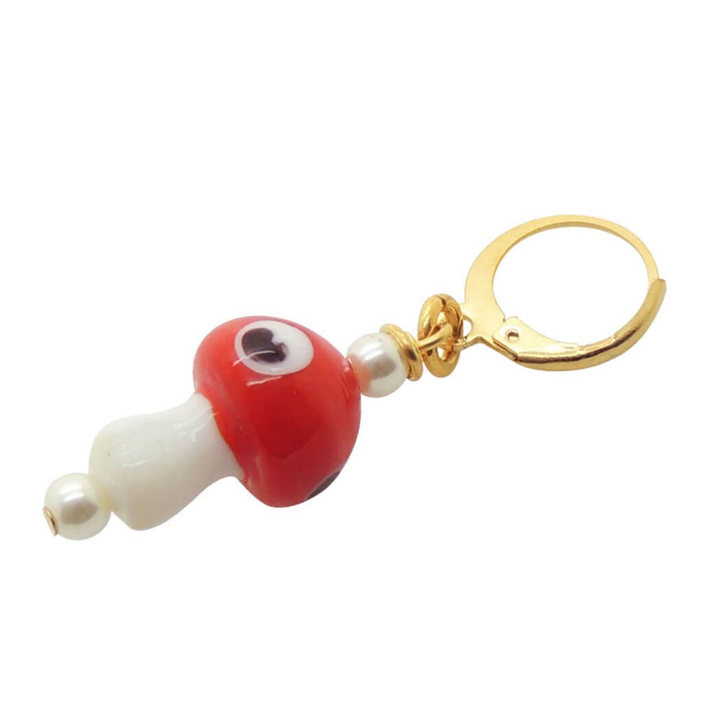 Step into a little woodland wonder. Our enchanted shroom huggie earring is a single, snug-fitting plated brass earring featuring a hand-blown glass mushroom charm suspended delicately between two faux pearl beads. Equal parts whimsical and wearable, this charm brings a touch of the enchanted forest to your everyday ear stack. Style it solo for a subtle statement or pair it with hoops and studs for a curated, magical mix.