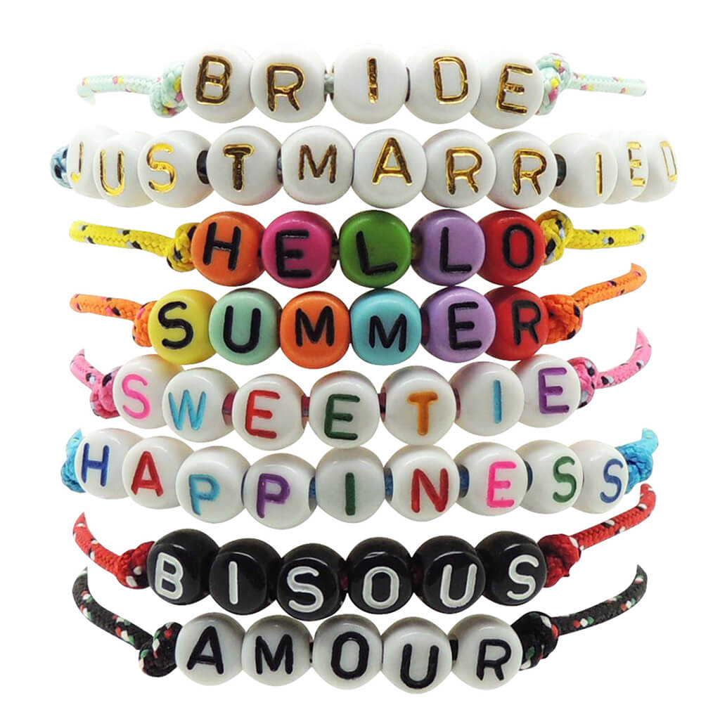 - Alphabet beads are available in the English alphabet only (no accents, symbols, or numbers).